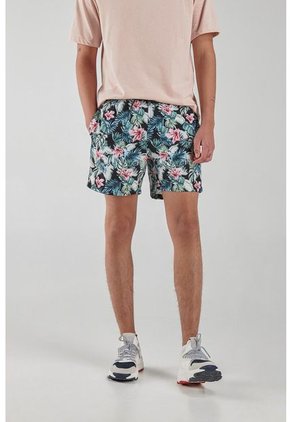 Bermuda piscinera para hombre, en poliester, tiro bajo, con estampado, cordón y bolsillos.