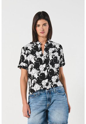 Blusa manga corta para mujer en tono unicolor cuenta con cuello camisero, diseños estampados, prense en espalda, bolsillo en el pecho, cierre con botones en frente y una silueta ajustada al cuerpo. ¿Buscas una prenda que refleje tu personalidad moderna? ¡Esta es la indicada! Combínala con tu mejor jean y luce genial en todo momento.