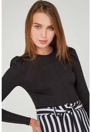 Blusa para mujer, en tela de cuerpo unicolor, mangas largas, silueta holgada.