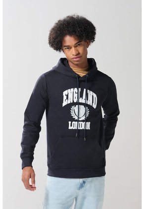 Buzo con capota para hombre en tono azul intenso cuenta con bolsillo delantero, tejidos en rib en ruedo y puños, diseño college blanco en frente, cordón para anudar, manga larga y una silueta ajustada. Crea un look moderno, divertido y lleno de color con esta prenda, combínala con tus jeans favoritos y luce siempre a la moda.