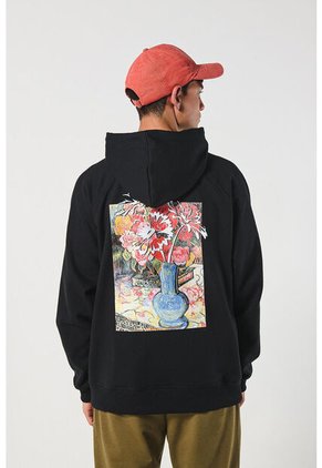 Buzo con capota para hombre en tono negro cuenta con puños y ruedo en rib, diseño floral artístico en frente y espalda, cordón para anudar, bolsillo delantero y un fit ligeramente ajustado. ¡Esta es la prenda que tu estilo pide a gritos! Combínala con un jean slim y crea un outfit juvenil con el que marques la diferencia.
