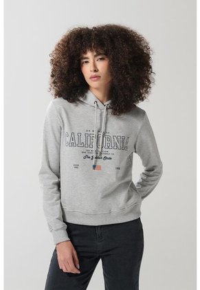 Buzo para mujer, con capota y túnel de cordón para anudar, con tejido en rib en puños y ruedo, con estampado localizado en el frente. Con esta prenda completa tu outfit y crea un estilo tan único como tú.