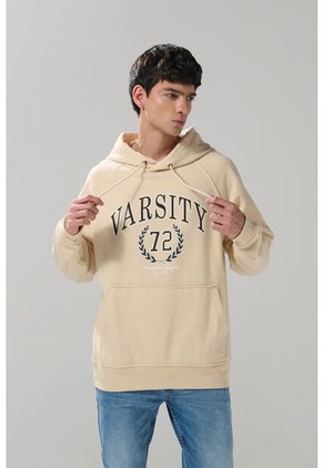 Hoodie Unicolor Para Hombre Crema Ostu