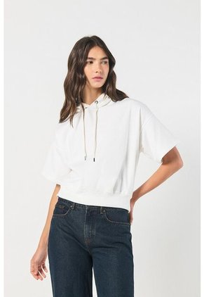 Buzo capota unicolor para mujer manga corta silueta amplia. Luce esta prenda y combínala con cualquier look.