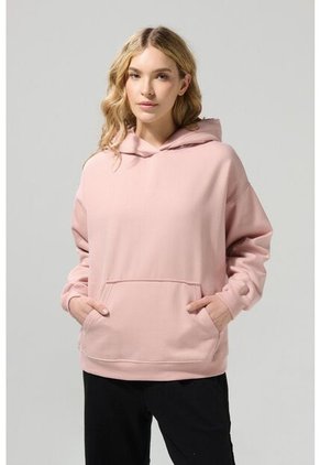 Buzo con capota para mujer en tono rosado claro cuenta con cordón para anudar, bordes de ruedo y puños en rib, bolsillo delantero, hombro caído, manga larga y un fit oversize en el cuerpo. Esta prenda hará un match perfecto con tu estilo, combínala con un jean baggy y crea un look con el que te destaques.