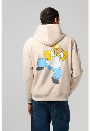 Buzo kaki claro con capota para hombre cuenta con cordón para anudar, bordes de ruedo y puños en rib, diseño de Homero (Los Simpson), bolsillo delantero, manga larga y un fit ligeramente ajustado. Para los días donde el frío no da tregua esta prenda es perfecta. ¡Con un jean slim lucirás fantástico!