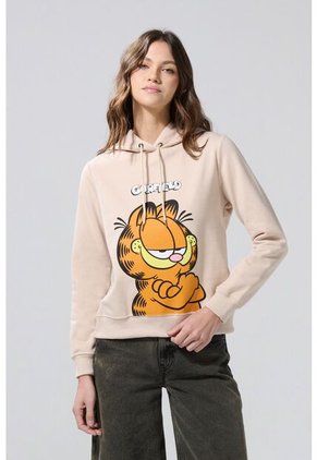 Buzo con capota para mujer en tono kaki claro cuenta con bordes de ruedo y puños tejidos en rib, diseño de Garfield en frente, cordón para anudar, manga larga y una silueta ajustada. Infaltable en tu guardarropa, podrás lucirla con tus jeans KOAJ favoritos y crear estilos con los que reflejes tu lado más encantador.