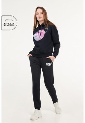 Buzo, para mujer, con capota, estampado en frente y manga de NASA
