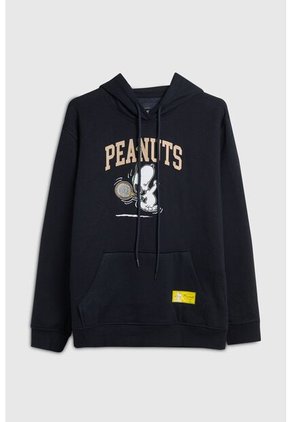 Buzo azul intenso con capota para niña, confeccionado en tela perchada, cuenta con ruedo y puños en rib, manga larga, diseño de Snoopy, cordón para anudar, bolsillo en frente y una silueta ajustada. Comodidad y estilo en una sola prenda que podrás combinar con tu mejor jean y lucir para disfrutar de los días fríos.