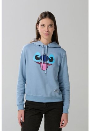 Buzo para mujer con capota azul claro cuenta con cordón para anudar, puños y ruedo con acabados en rib, diseño en frente de Lilo & Stitch (Disney) y un fit sutilmente ajustado al cuerpo. Luce juvenil en todo momento combinándolo con tus jeans o faldas KOAJ favoritas, así le darás una nueva identidad a tu propio estilo.