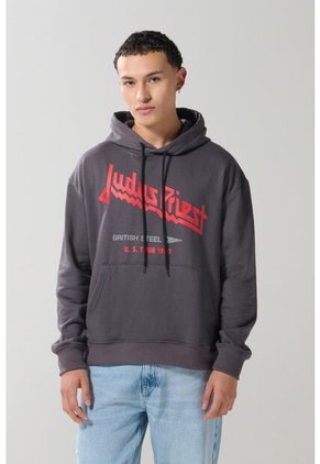 Buzo gris intenso con capota para hombre cuenta con bolsillo delantero, puños y ruedo en rib, manga larga, cordón para anudar, diseño en frente de Judas Priest y un fit oversize. ¡Cómoda e ideal para los días fríos! Combínala con tu mejor jean y crea un look con el que le des ritmo a tu estilo.