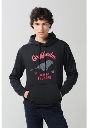 Buzo capota gris oscuro para hombre, con capota y túnel de cordón para anudar, bolsillo canguro, con tejido en rib en puños y el ruedo, con un estampado localizado de Harry Potter en el frente. Con esta prenda completa tu outfit y crea un estilo tan único como tú.