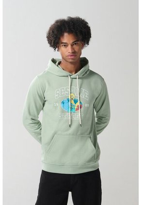 Buzo con capota para hombre en tono verde claro cuenta con cordón para anudar, tejidos en rib en ruedo y puños, manga larga, bolsillo delantero, diseño de Plaza Sésamo en frente y una silueta ajustada. Completa tu propia colección con esta prenda, podrás usarla en tus planes diarios con tus jeans KOAJ preferidos.