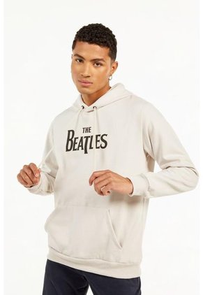 Buzo con capota para hombre en color Kaky, estampado de The Beatles sobre el frente, bolsillo canguro y fit semi ajustado.