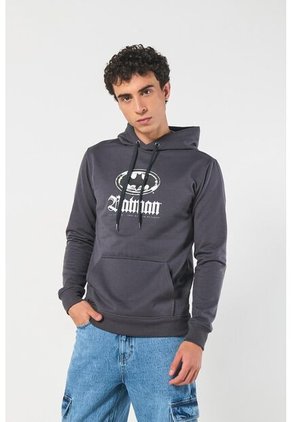 Buzo con capota gris intenso para hombre cuenta con ruedo y puños tejidos en rib, diseño de Batman estampado en frente, bolsillo canguro, cordón para anudar y un fit ligeramente ajustado. Luce como un auténtico caballero de la moda combinando esta prenda con tus jeans favoritos. ¡Serás la sensación!