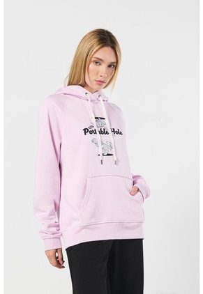 Buzo con capota rosado claro para mujer cuenta con borde inferior y puños tejidos en rib, manga ranglan larga, diseño de Bugs Bunny (Looney Tunes), bolsillo en frente, cordón para anudar y un fit ligeramente ajustado. Innova con tu look combinando esta prenda con un jean mom, así te destacarás en todo momento.
