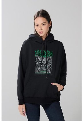 Buzo capota con mangas y capota en color contraste, estampado en frente de Evil Queen una prenda que elevará tu outfit