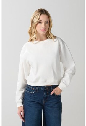 Buzo unicolor para mujer cuenta con puños y ruedo tejidos en rib, cuello redondo, manga larga, hombro rodado y un fit que se ajustará al cuerpo en la medida precisa. Esta prenda es un clásico que se renueva con su estilo moderno, combínala con tus jeans o joggers favoritos y lúcela en tus planes casuales.