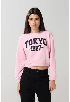 Buzo cuello redondo para mujer en tono rosado claro cuenta con ruedo y puños tejidos en rib, diseño college en frente, manga larga y un fit que se ajustará al cuerpo en la medida precisa. ¡Esta prenda está en tendencia! Combínala con un jean jegging y crea un total look perfecto para tu próxima salida con amigos.
