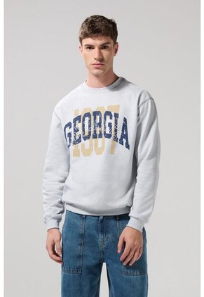 Buzo para hombre cuello redondo kaki claro cuenta con ruedo y puños tejidos en rib, diseño college estampado en frente, hombro rodado, manga larga y un fit ligeramente ajustado. Esta prenda es una opción atemporal y moderna que reflejará tu personalidad. ¡Con jeans o faldas te verás auténtica!