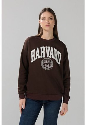 Buzo para mujer cuello redondo negro cuenta con ruedo y puños tejidos en rib, hombro caído, manga larga, diseño college localizado en frente y una silueta oversize en el cuerpo. Dale una vibra moderna a tu outfit combinando esta prenda con una falda o un jean. ¡Lucirás sensacional para salir con tus amigos!