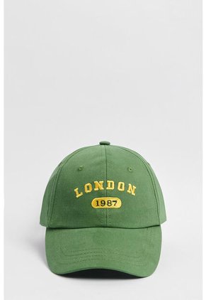 Cachucha para hombre tipo beisbolera verde oscura cuenta con visera curva, diseño college bordado en la parte delantera y cierre posterior. Dale un toque auténtico a tus días soleados con este accesorio, combínalo con tus atuendos favoritos y marca la diferencia con tu propio estilo.MEDIDAS: Contorno de Cabeza 58.0 cm y Pulgada 22.6