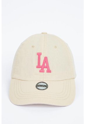 Cachucha beisbolera para mujer en tono unicolor, elaborada en tela de drill, tiene un diseño de letras college bordadas en frente y una visera curva. ¡No dejes tu look a la suerte! Combínala con tus looks casuales y lúcela para disfrutar con estilo de los días más soleados.