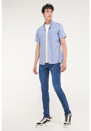 Camisa para hombre, en tela a rayas, cuello button down, bolsillo en frente