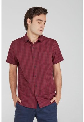 Camisa para hombre, en tela de cuerpo con motivo, botones en contraste, manga corta y silueta ajustada.