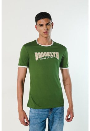 Camiseta Básica Con Mini Print Verde Para Hombre