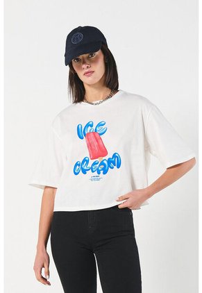Camiseta Para Mujer Manga Corta Cuello Redondo Color Crudo Marca Seven Seven #28096370