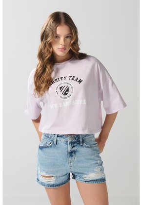 KOAJ Camiseta Rosada Con Arte College Y Manga Ranglan Corta