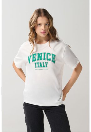 Camiseta Para Mujer Manga Corta Cuello Redondo Color Crudo Marca Seven Seven #28096556