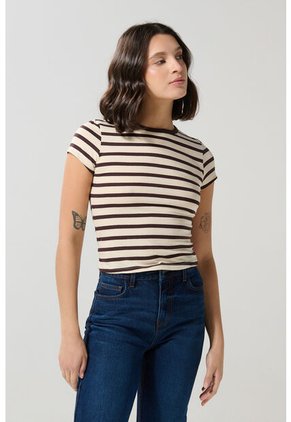 Camiseta Para Mujer Manga Corta Cuello Redondo Color Crudo Marca Seven Seven #28096201