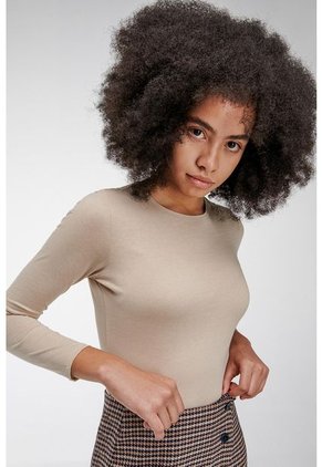 Camiseta básico unicolor femenina, cuello redondo y manga larga.