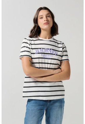 Camiseta para mujer oversize cuello redondo manga corta con puño con doble doblez con estampado foil en frente, esta prenda es perfecta para complementar cualquier tipo de outfit.