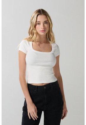 Camiseta Para Mujer Manga Corta Cuello Redondo Color Crudo Marca Seven Seven #28096534