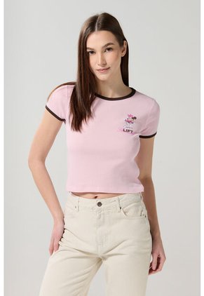 Camiseta Estampada Para Mujer Dusti Manga Corta Rosada