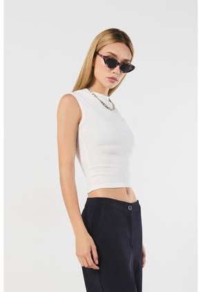 Camiseta para mujer en tono unicolor, elaborada en tela suave al tacto, cuenta con cuello redondo, manga sisa y una silueta ajustada al cuerpo. Dale un toque moderno a tu look combinando esta prenda con tus jeans o faldas favoritas, así serás la sensación en todos tus planes.