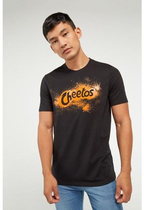 Camiseta cuello redondo negra para hombre cuenta con una confección en algodón y poliéster, mangas cortas, un diseño de Cheetos estampado en frente y una horma ajustada que contrastará con tu torso. ¡El estilo moderno y crocante de esta prenda te encantará! Combínala con un jean 90S y crea un look ideal para ir a estudiar, trabajar o salir con tus amigos.