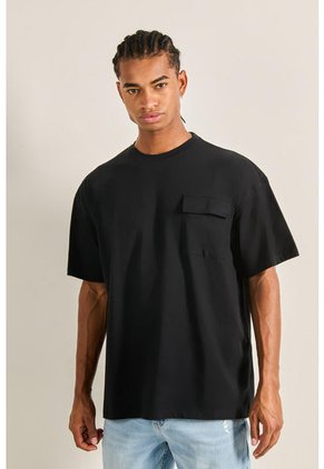 Camiseta manga corta para hombre en tono unicolor cuenta con bolsillo funcional en el pecho, cuello redondo, hombro rodado y una silueta oversize. Deja que la onda streetwear se refleje en tu total look con esta prenda, combínala con un jean carpintero y crea un atuendo con el que seas la sensación.