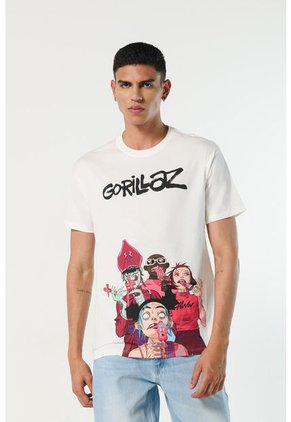 Camiseta crema clara para hombre cuenta con manga corta, cuello redondo, hombro rodado, diseño de Gorillaz estampado en frente y un fit que se ajustará al cuerpo en la medida precisa. Para los planes diarios o casuales esta prenda será esencial, con un jean y un par de tenis lucirás como un auténtico rockstar.