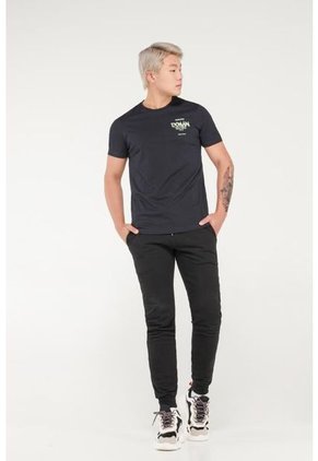 Camiseta basica manga corta, cuello redondo, para hombre con estampado localizado en frente y espalda