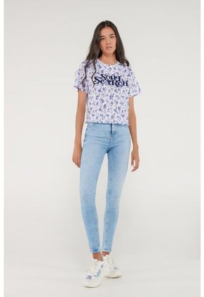 Camiseta para mujer, manga corta y cuello redondo con estampado floral.