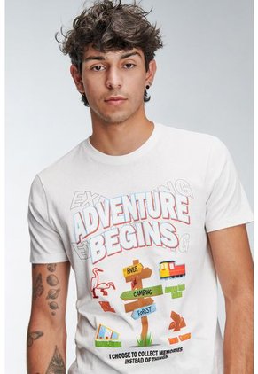 Camiseta básica para hombre manga corta, estampada en frente, estilo vacacional.