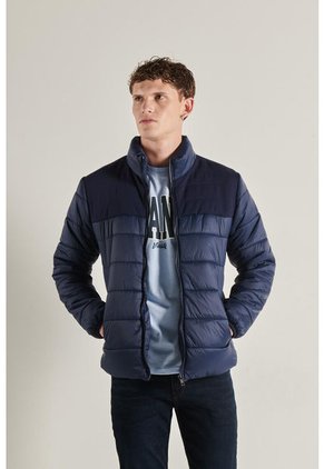 Chaqueta acolchada para hombre en tono unicolor cuenta con puños en rib, cierre delantero con cremallera, diseño con bloque de color en frente, 2 bolsillos laterales y una silueta ceñida al cuerpo. Esta prenda será ideal para lucir en los días fríos, con ella tu estilo brillará a donde vayas.