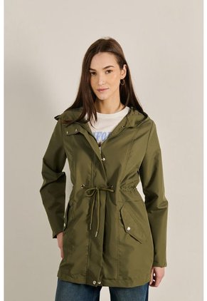 Chaqueta parka unicolor para mujer, confeccionada ene tela liviana, cuenta con capota, cintura con cordón ajustable, cierre delantero con cremallera, 2 bolsillos laterales con tapa y un fit ceñido al cuerpo. ¡Vibra con tu look en todo momento! Combina esta prenda con tus atuendos casuales y luce siempre a la moda.