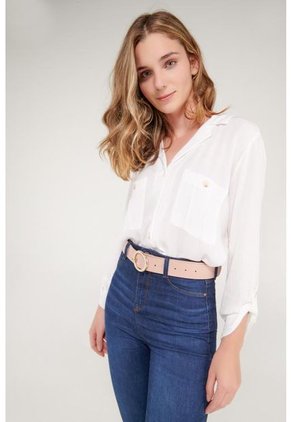 Cinturón para mujer, unicolor y hebilla con perlas decorativas.