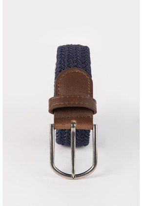 Cinturón para hombre en tono azul intenso, elaborado en material trenzado, cuenta con punta y trabilla en sintético y hebilla metálica plateada con forma redondeada. Luce este accesorio con tus jeans o pantalones en dril preferidos, así crearás cientos de estilos hechos a tu medida. MEDIDAS:Talla Cinturon 90cm, 95cm, 100cm, 105cm, La medida se toma desde el inicio de la hebilla hasta la 3 perforacion.
