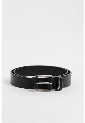 Cinturón para hombre en tono negro cuenta con hebilla cuadrada metálica con aguja, trabilla sencilla y textura lisa. Crea un outfit estilizado luciendo este accesorio con tu mejor jean KOAJ, así te destacarás cualquier día de la semana.